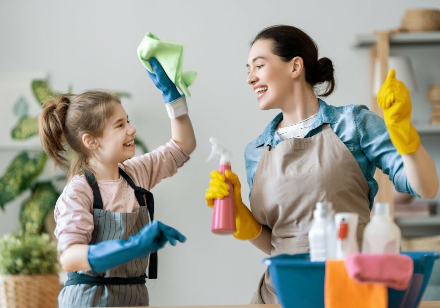 If they’re elementary-aged, give them something simple and bite-sized to do, like sorting items into a bin or small cleaning tasks with nontoxic chemicals. Younger kids can make it more of a game—you can give them a cloth and water to “pretend clean,” ask them to sort colors of items on the floor, or something similar.